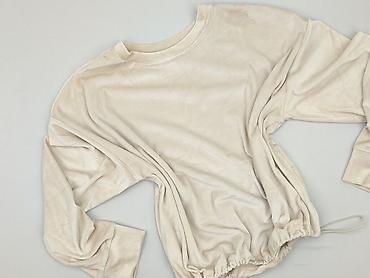 Beżowa bluza damska, rozmiar 42 - Fason: luźny, z długim rękawem - Dekolt: okrągły - Dół i mankiety: elastyczne ściągacze - Materiał: 95% bawełna, 5% elastan – miękka, przyjemna w dotyku, lekko el...Stan: