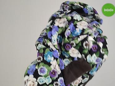 - Wzór: gęsty, kwiecisty nadruk na czarnym tle (róże i fiołki w odcieniach bieli, fioletu i niebieskiego).