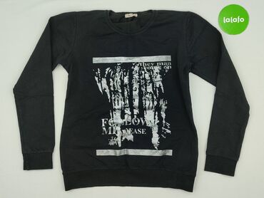 Bluza damska PLNY LALA, rozmiar M. - Kolor: czarny - Fason: klasyczna bluza z okrągłym dekoltem, długie rękawy, ściągacze przy mankietach i na dole - Przód: srebrne nadruki – trzy gwiazdy przy deko...Stan: