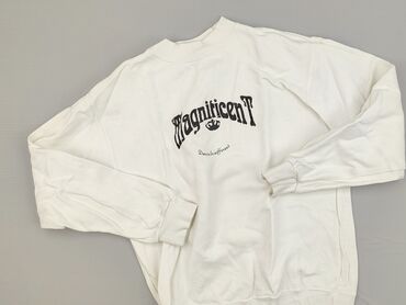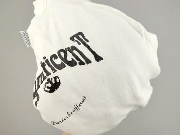 Biała bluza damska Tally Weijl w rozmiarze XS. Bluza ma długie rękawy i okrągły dekolt, ozdobiona jest nadrukami przedstawiającymi zdjęcia modelek oraz różowy tekst i hasła, przypominające strony z...