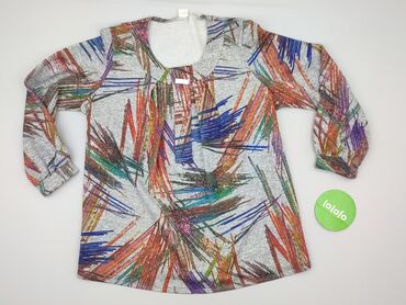 Bluzka damska z nadrukiem artystycznym - Fason: luźny, lekko asymetryczny dół (tył dłuższy), rękaw 3/4 - Dekolt: okrągły - Materiał: cienka, lekko prześwitująca dzianina o drobnym splocie (miękka ...Stan: