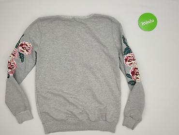 - Fason: klasyczna bluza z okrągłym dekoltem, długie rękawy, ściągacze przy mankietach i u dołu