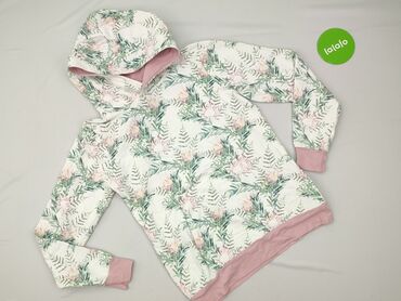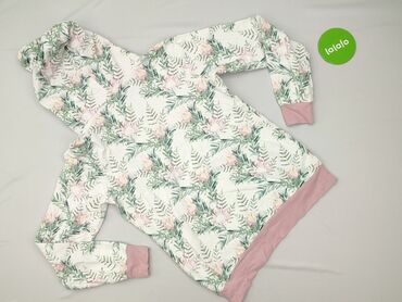 Bluza z kapturem w kwiaty - Krój: oversize, z obszernym kapturem i długim rękawem - Materiał: 100% poliester (na metce) - Wykończenie: delikatny, lekko satynowy połysk - Wzór: bogaty, roślinny pri...