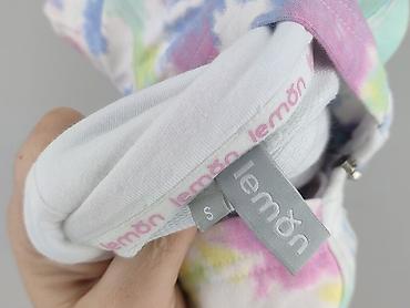 Bluza damska Lemon, rozmiar S, z kapturem i krótkim rękawem. Model zapinany na suwak na całej długości, z dużą kieszenią kangurką z przodu. Tkanina 100% bawełna (również podszewka 100% bawełna) – miękka, oddychająca i przyjazna dla skóry. Kolorystyka typu tie‑dye w pastelowych odcieniach: błękity, róże, fiolety, żółcie i zielenie na białym tle. Ściągany dół z lekkim zaokrągleniem z tyłu.