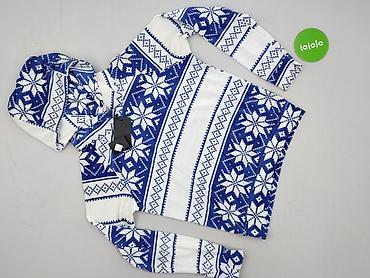 - Wzór: biało‑niebieski, zimowy/skarpetkowy motyw w stylu norweskim (płatki śniegu, geometryczne pasy)