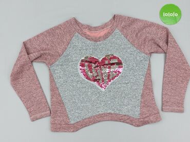 WsuwaneBluza dziewczęca z długim rękawem, raglanowa. Przód w kolorze jasnoszarym melanż, rękawy i tył w odcieniu pudrowego różu melanż. Na środku przodu duża aplikacja z dwustronnych cekinów w kształcie serca (odcienie różu i srebra), które zmieniają wygląd po przeciągnięciu dłonią. Okrągły dekolt, lekko wydłużony i zaokrąglony dół z przodu i z tyłu. Miękka, dzianinowa tkanina przyjemna w dotyku, idealna na co dzień. Rozmiar dziecięcy (brak oznaczenia na zdjęciach). Kolory: różowy, jasnoszary, srebrny. Idealna do legginsów lub jeansów.