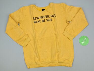 Żółta bluza Cropp z nadrukiem GROOVY - Marka: Cropp - Rozmiar z metki: M - Krój: luźny, z obniżoną linią ramion; ściągacze przy mankietach i u dołu - Materiał: 100% bawełna (miękki, pętelkowy spód...