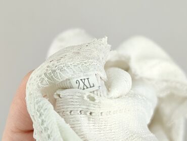 Biała bluzka damska z haftem, rozmiar XXL. - Materiał: 100% bawełna (metka na zdjęciu) - Krój: luźny, z krótkim rękawkiem typu motylek - Dekolt: okrągły - Góra z ażurowej bawełny (koronka angielsk...