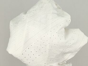 Biała, lekka bluzka damska z haftem angielskim w kwiaty. - Materiał: przewiewna tkanina z ażurowym, kwiatowym haftem (delikatnie półprzezroczysta). - Krój: luźny, prosty; opuszczone ramiona, krót...