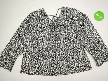 Damska bluzka Nutmeg - Rozmiar z metki: 18 (UK) - Fason: luźny, lekko rozszerzany, zwiewny - Rękawy: długie z delikatnym marszczeniem przy mankietach - Dekolt: w kształcie litery V - Wzór: czarno-...