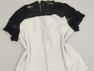 Bluzka damska ADME – rozmiar M - Kolor: biały/ecru - Materiał: 100% wiskoza (metka) - Fason: lekko zwiewny, zapinana na guziki z przodu - Dekolt: okrągły - Rękawy: długie - Detale: ażurowe wstawki...