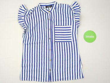 Bluzka damska MARTA - Krój: luźny, prosty, z falbanką na rękawkach i na dole - Zapięcie: listwa z przodu na białe guziki (3 szt.), dodatkowy guzik przy stójce - Kołnierz: stójka - Wzór: drobne, bi...