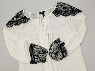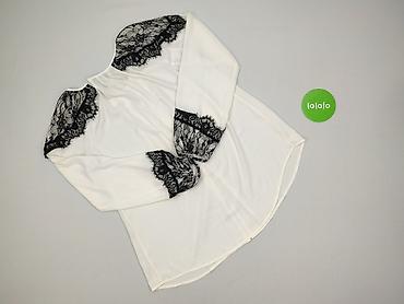 Bluzka damska z długim rękawem, w kolorze białym/jasnym ecru. Model z efektowną koronkową aplikacją z przodu oraz przy dekolcie tworzącą kształt litery V – dekoracyjna, ażurowa, bogato zdobiona. De...