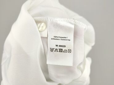 Biała, zwiewna bluzka damska z krótkim rękawkiem typu motylek. - Materiał: 100% poliester, z podszewką 100% poliester (etykieta na zdjęciu). - Rozmiar: 16 (UK). - Krój: luźny, lekko asymetryczny...