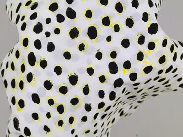 - Wzór: nieregularne kropki/cekinowe „pędzlowe” kropki w kolorze czarnym z akcentami żółtego i szarego na białym tle