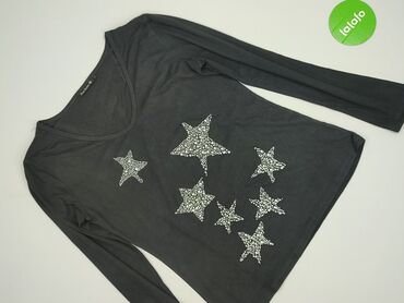 Bluzka damska z długim rękawem, rozmiar L. - Kolor: grafitowy/melanż. - Wzór: jasne, różnej wielkości gwiazdy na całej powierzchni. - Krój: zaokrąglony dekolt, lekko wydłużony tył z zaokrąglonym d...