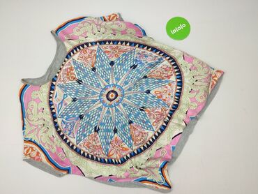 Bluzka damska ONLY, rozmiar 36. - Krój: luźny, z krótkim rękawem typu kimono; lekko wydłużony tył. Dekolt w serek z małym rozcięciem i troczkiem do zawiązania. - Wzór: etniczny/mandale w granatowo–...