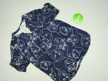Bluzka damska BE YOU - Krój: luźny, prosty, z krótkim rękawem; delikatnie dłuższy tył - Dekolt: okrągły - Wzór: granatowa baza z kwiatami i motywem ptaków, pastelowe odcienie różu, zieleni, bieli ...
