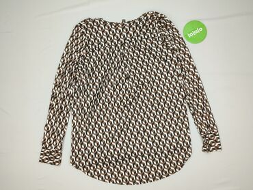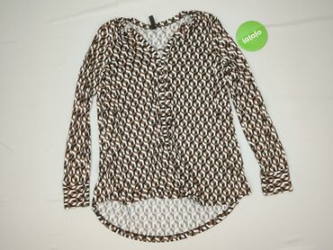 Damska bluzka z długim rękawem, wzór geometryczny - Krój: lekko dopasowany, z dekoltem w kształcie litery V zapinanym na mały guzik. - Rękawy: długie. - Wzór: patchwork/geometryczny z rombami i ko...Stan: