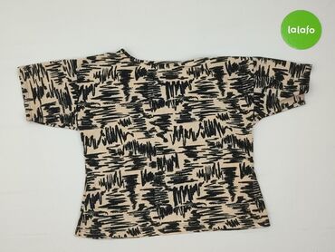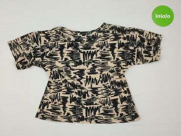 Bluzka damska Atmosphere (Primark) - Krój: luźny, lekko skrócony top z krótkim rękawem i okrągłym dekoltem - Wzór: graficzny, geometryczny print w czerni i ecru, przełamany pionowymi pasami w kolo...