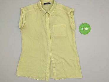 Żółta bluzka bez rękawów Atmosphere (Primark) - Model: koszula bez rękawów z kołnierzykiem - Zapięcie: rząd metalicznych guzików z przodu - Krój: swobodny, z warstwowymi, zwiewnymi falbanami z prz...