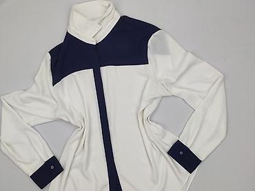 Elegancka, minimalistyczna bluzka w ponadczasowym połączeniu ecru i granatu. Rozmiar odpowiada standardowemu 40 (UK 14). Idealna na co dzień i do pracy.