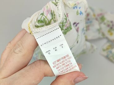 Bluzka damska Atmosphere - Kolor: biały - Dekor: duży haft kwiatowy z przodu (róż w odcieniach różu z zielonymi liśćmi) - Rękawy: 3/4 z falbaną - Dekolt: okrągły - Zapięcie: mała łezka z tyłu na h...