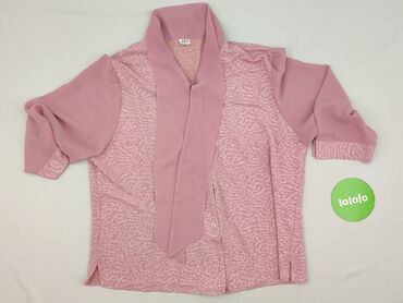 Bladoróżowa damska bluzka z długim rękawem, rozmiar XXL. - Krój luźny, wygodny, z delikatnymi zakładkami (plisami) z przodu. - Dekolt okrągły z krótką listwą guzikową (4 guziki). - Mankiety lekko m...