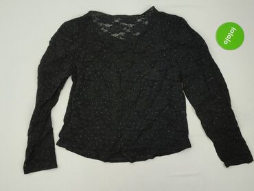 Bluzka damska z długim rękawem, czarna. - Fason: prosty, z dekoltem w kształcie litery V. - Ozdoba: koronkowa wstawka na przodzie układająca się w głębokie V, delikatny, kwiatowy wzór. - Rękaw: dł...