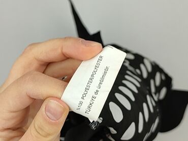 - Materiał: 100% poliester (etykieta: Polyester, made in Turkey). Zwiewna, półprzezroczysta tkanina.