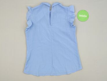 Bluzka damska z falbanami, błękitna - Krój: prosty, lekko luźny, długość do bioder - Dekolt w kształcie litery V zdobiony szeroką falbaną - Ozdobna listwa z falbaną biegnąca wzdłuż przodu - Rękawy...Stan:
