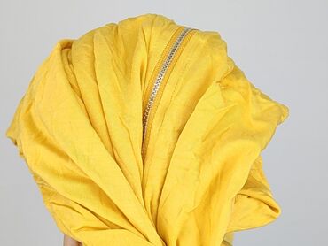 Bluzka damska oversize w intensywnym żółtym kolorze. - Krój: luźny, z obniżoną linią ramion i krótkimi, szerokimi rękawami; lekko krótszy przód i dłuższy tył. - Dekolt: stójka/falowana stójka zapi...Stan: