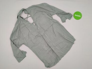 Bluzka damska z długim rękawem, miękka i lekka, w kolorze jasnej mięty/szałwii. - Krój: swobodny, z dekoltem w serek i krótką listwą guzikową (3 guziki z przodu + guziki przy mankietach). - Materi...