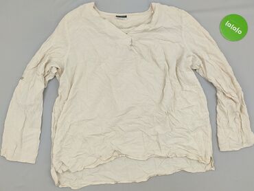 Bluzka damska BELOVED Woman - Rozmiar: EU 42 (ES 44 / IT 46 / UK 14) - Fason: luźny, dłuższy krój - Kolor: ecru/biel z beżowym, tkanym wzorem w drobne kwadraciki - Dekolt: w serek z krótką patką i...