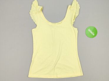 Bluzka damska BELOVED WOMAN - Kolor: pastelowy żółty - Krój: luźny, z zaokrąglonym dołem (dłuższy tył) - Dekolt: w kształcie litery V z ozdobną plisą i jednym dużym, perłowym guzikiem - Rękawy: kr...
