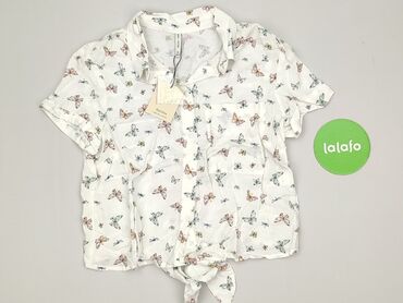 Koszula H&M – krótka, wzór liści - Marka: H&M - Rozmiar z metki: XS (EUR XS, US XS, CA TP, MX XCH, CN 160/80A) - Fason: boxy/cropped, krótki - Rękaw: krótki, luźny - Zapięcie: na guziki z przodu -...