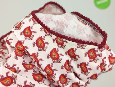 - Wykończenie: lamówka przy dekolcie i pachach z dekoracyjną bordową falbanką/picot, staranne szwy overlock