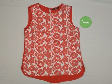 Top damski DUNNES - Kolor: intensywny pomarańczowo‑czerwony - Wzór: drobne złote kropki/nadruk w groszki - Krój: bez rękawów, okrągły dekolt, dwuwarstwowy przód z krótszą, lekko falującą warstwą w...