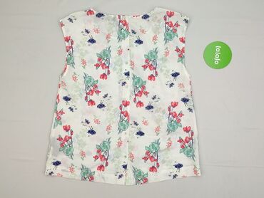 Bluzka bez rękawów Esmara - Kolor: jasny ecru/śmietankowy z nadrukiem w tropikalne liście, kwiaty i małe małpki oraz tukany - Krój: luźny, lekko dłuższy tył; dekolt w serek z plisą z guzikami z pr...