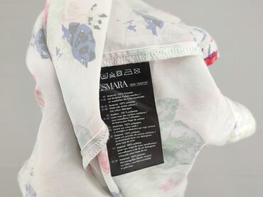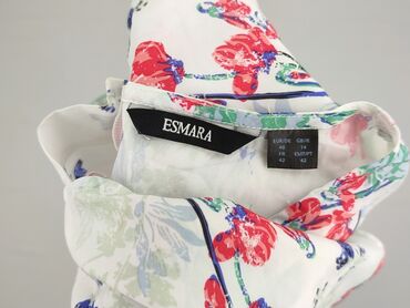 Bluzka damska Esmara z długim rękawem - Marka: Esmara - Rozmiar z metki: L (44/46) - Kolor/print: biały w kwiaty (odcienie różu i niebieskiego) - Dekolt: okrągły z niewielkim rozcięciem i troczkie...
