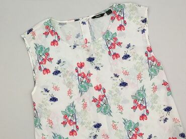 Bluzka damska Esmara - Wzór: akwarelowe kwiaty w pastelowych kolorach (róż, żółty, fiolet, błękit, zieleń) na jasnym tle - Krój: lekko wydłużony tył, luźniejsza linia, dekolt w kształcie litery V ...