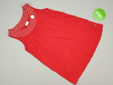 Bluzka damska bez rękawów - Krój: top/tank, prosty, z okrągłym dekoltem - Wzór: czerwone grochy różnej wielkości na białym tle - Materiał: lekka, miękka tkanina (przyjemna w dotyku, przewiewna) - ...