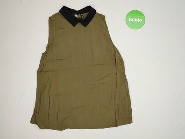 Bez rękawówTa bluzka damska w kolorze khaki, rozmiar M, to stylowy i praktyczny element garderoby. Charakteryzuje się czarnym kołnierzykiem, który dodaje elegancji. Fason bez rękawów sprawia, że jest idealna na cieplejsze dni. Zapinana na guzik z tyłu, co ułatwia zakładanie. Doskonale sprawdzi się w codziennych stylizacjach, jak i na bardziej formalne okazje.