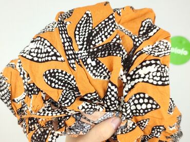 Bluzka koszulowa damska z krótkim rękawem - Kolor: intensywny pomarańcz z nadrukiem liści w odcieniach bieli i czerni - Fason: luźny, zapinany na guziki z przodu; wiązanie na dole (knot/tie front) ...