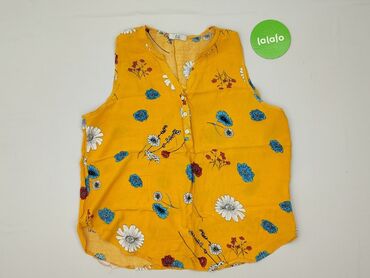 Bluzka damska FEMME bez rękawów - Kolor: musztardowy w czarne grochy - Krój: luźny, z falbankami na ramionach, dekolt w kształcie łagodnego V z zakładkami - Zapięcie: mały guziczek z tyłu przy szy...