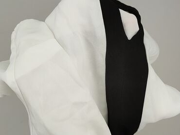 Biała damska bluzka bez rękawów z ozdobnymi ćwiekami. - Materiał: lekka, zwiewna tkanina o drobnej fakturze (sztuczny jedwab/chiffon – cienka, półprzezroczysta). - Krój: luźny, wydłużony tył z zao...