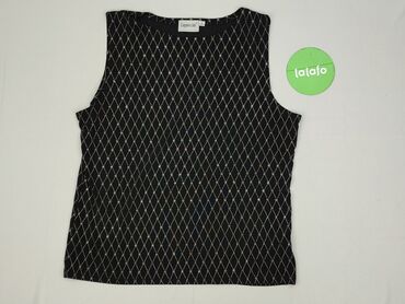 Bluzka damska bez rękawów z połyskiem - Kolor: czarny z delikatnym, srebrzystym melanżem (lekko połyskująca nitka) - Krój: prosty, lekko rozszerzany ku dołowi; rozcięcia po bokach u dołu - Dekolt:...