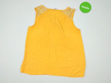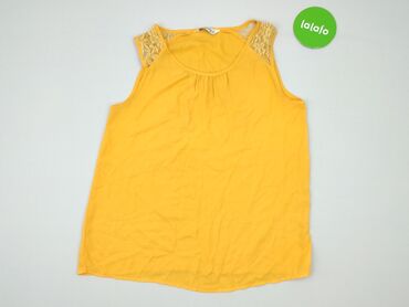 Żółta bluzka damska bez rękawów - Rozmiar z metki: 38 - Krój: luźny, lekko zaokrąglony dół, przedłużony tył, delikatnie opadające ramiona (cap sleeves) - Dekolt: w kształcie litery V - Materiał: c...