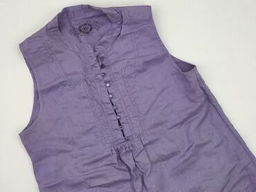 Lniana bluzka bez rękawów w kolorze lawendowym. - Fason: zapinana na guziki z przodu, dekolt w kształcie litery V - Tył: wszyty pasek/sznurek do wiązania w talii, pozwala dopasować obwód - Materia...Stan: