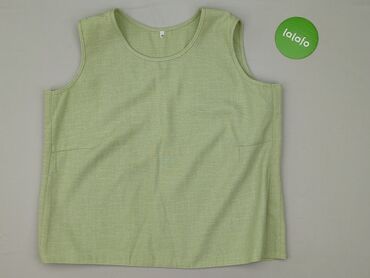 Jasnozielona bluzka damska bez rękawów. Charakteryzuje się dekoltem w kształcie litery V, który jest ozdobiony subtelnymi przeszyciami i drobnymi, błyszczącymi aplikacjami, dodającymi elegancji. Id...Stan: